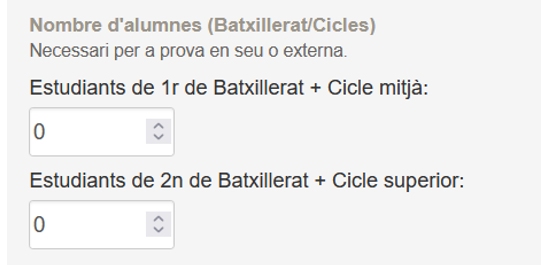 • En cas d’oferir-se com a seu o demanar anar una seu externa , atenent que sent així l’organització elabora tot el material, cal indicar el nombre d’alumnes que volen participar en el concurs.