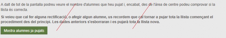 - i tot seguit convé que comproveu la llista d'alumnes pujats, que sigui correcta i completa. Vegeu com ho indica el formuari